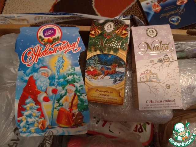 а дальше сладкий подарок и такие вкусные и любимые нами чаи (семья пьет только листовой чай, завариваем каждый день) а тут только выбирай