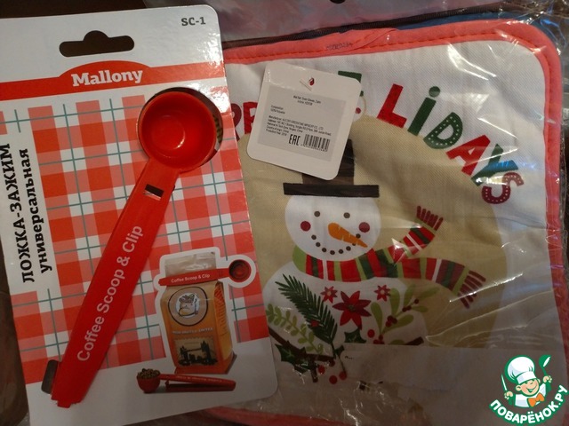 далее Снегурка вложила ложку-зажим и прекрасные и нужные прихватки