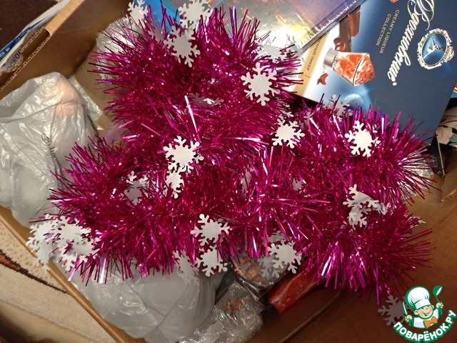 , там вот такая чудесная мишура обычная и со звездочками, уже красуется на елочке