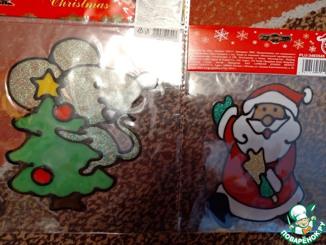 для украшения дома милые наклейки на окна или зеркала: символ года - мышонок и Дед Мороз!!!