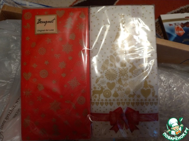 обязательно на новогоднем столе будут красоваться присланные нашей Снегурушкой салфетки - посмотрите какие красивые, нарядные и моих любимых цветов, яркие и контрастные!!!