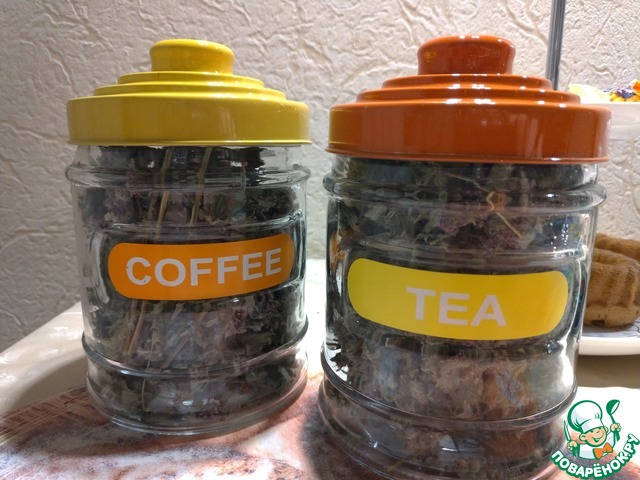 только баночки использованы для трав, которыми завариваю чай: зверобой и душица. Как я хотела прикупить подобное, ничего не попадалось и времени не было специально куда-то ехать. А теперь, посмотрите как вся моя трава для чая замечательно уместилась в эти две баночки