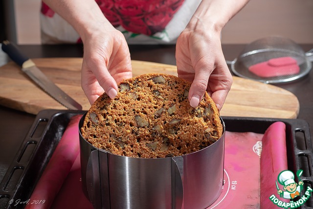 Кстати, лайфхак для тех, у кого газовая духовка. Низ даже самого высокого бисквита не подгорит, если кольцо сначала обернуть фольгой с пергаментом, а потом поставить на силиконовый коврик.