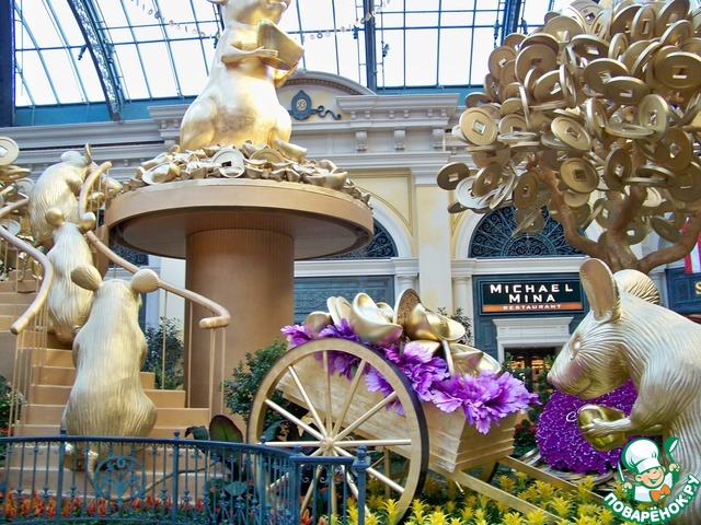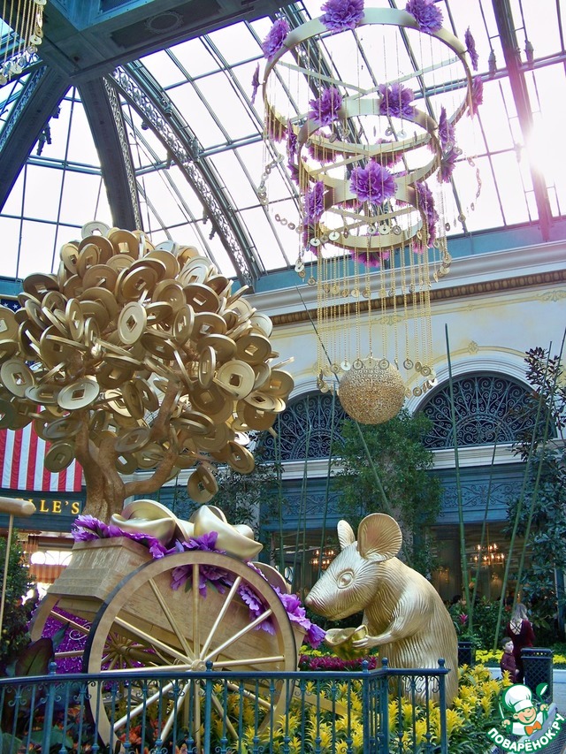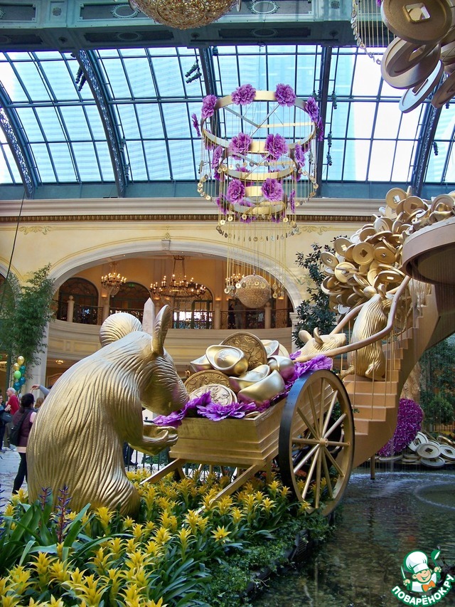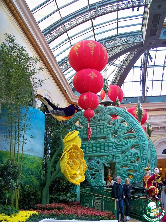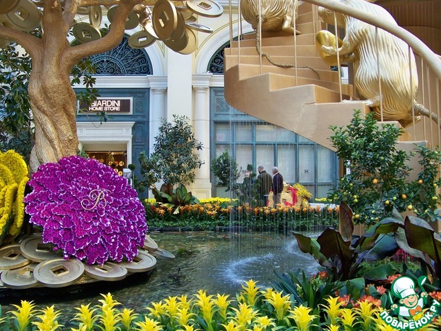 По традиции отправляемся в отель Белладжио, где нас ждёт удивительно красивое цветочное шоу! Для тех, кто впервые посещает цветочное шоу, поясню, что все композиции созданы талантливыми дизанейрами, флористами и просто людьми, любящими цветы и красоту! Многие конструкции украшены лепестками роз, тюльпанов и другими цветами. Наслаждайтесь, дорогие мои, красотой и волшебством сказки!