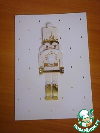 предновогодние дни. На открытке он до того красивый! Объемный! В блестках! Сапожки, одежда украшены камешками, оторочены "меховой" опушкой! Это что-то потрясающая! Хочется разглядывать и разглядывать.