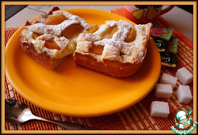Нежный персиковый пирог от Наташи Moravanka.Нежный,ароматный пирог,очень красиво выглядит и очень вкусный.