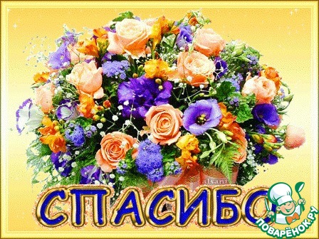 Спасибо авторам рецептов за вкусные и яркие блюда! Ваш труд, Ваш талант делает разнообразным, полезным и красивым меню моего дома, мне как хозяйке приятно слышать благодарность в свой и, особенно в Ваш, адрес! До новых кулинарных встреч! Спасибо всем кто заглянул на огонёк!