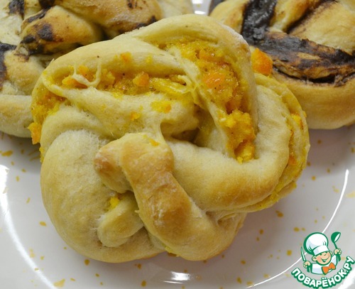 Также испекла с мандариновым джемом Булочки "Розочки с шоколадом"
