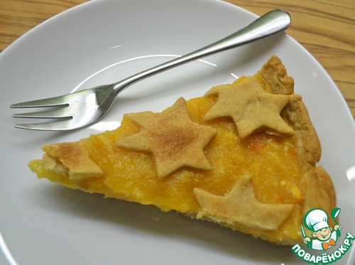 Тесто я сделала пол порции на форму 24 см, мы любим потоньше. Начинку сделала из апельсинов без кожуры и лимонов с кожурой. Получилось 400 грамм(300 - апельсин, 100 - лимон), а сахара 60 гр. Крахмала в два раза меньше положила.