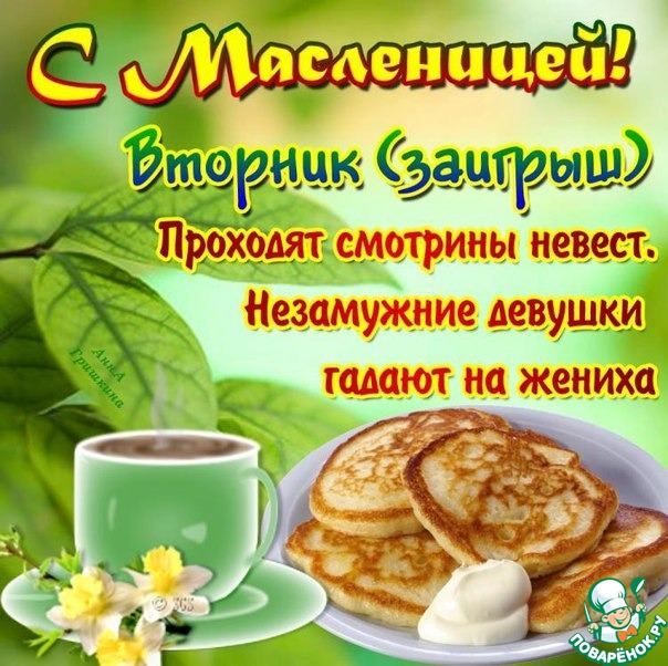 Вторник — заигрыши. Парни и девушки приглашали друг друга покататься с горок, поесть блинов. Звали родных и знакомых.