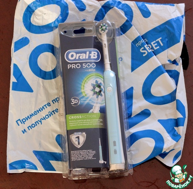 На днях звонит мне Дарья, представитель бренда Фрау Марта, и уточняет куда удобнее доставить приз, электрическую зубную щетку Oral-B pro 500, обговариваем этот момент и я с нетерпением жду курьера. Приезжает курьер, я расписываюсь в бумагах и он мне вручает огромную коробку, ну явно, не зубную щетку