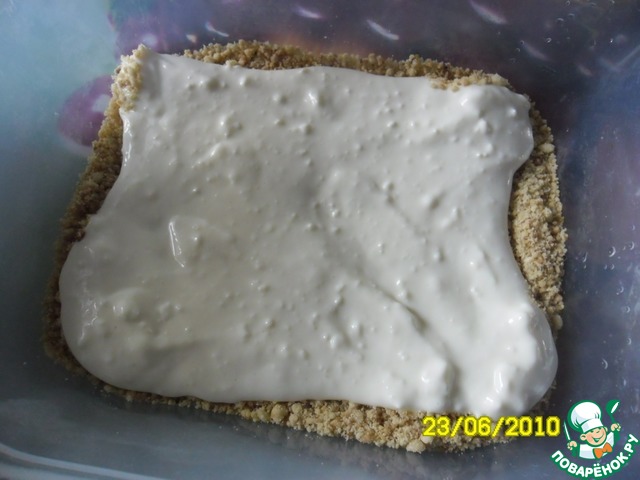 9) Крошку сбрызгиваем или заливаем кремом. И так - слой за слоем. Верх торта должен быть залит кремом и декорирован по желанию.