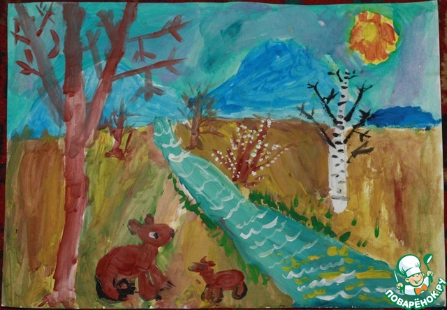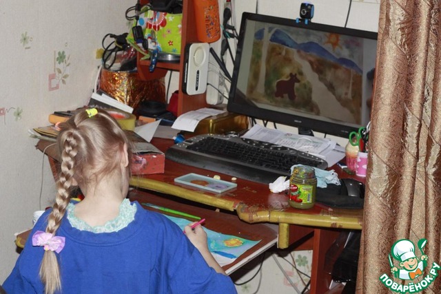 А вот, например, в кружке рисования преподаватель нашла возможность записать видеоурок и Аня сегодня рисовала весенний пейзаж.