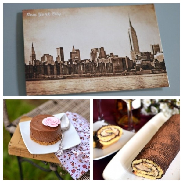 Открытка из Нью-Йорка и парочка блюд коричневого цвета.