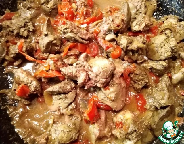 Куриная печень с болгарским перцем по рецепту Яны yana69 https://www.povarenok.ru/recipes/show/60922/