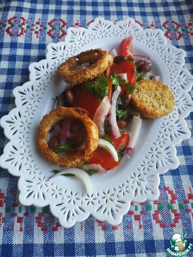 Салат "Кольца Сатурна" https://www.povarenok.ru/recipes/show/163204/ Очень понравилось сочетание фасоль/помидор/кинза! Вкусно!