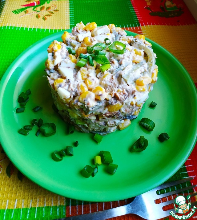 Салат с тунцом и маринованными огурцами https://www.povarenok.ru/recipes/show/145649/ Вкусный салатик, не хопотный и очень нежный! Из изменений - совсем не солила и лук использовала зеленый.