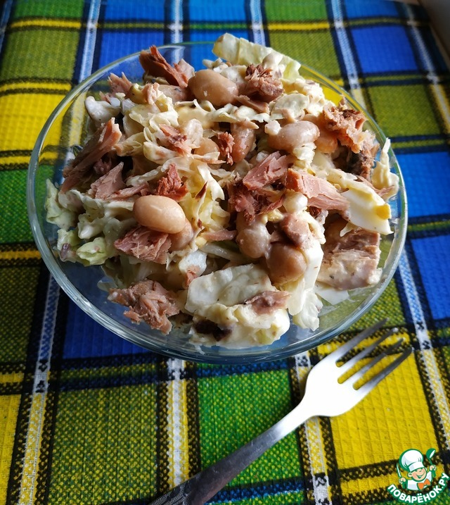 Салат из фасоли, тунца и капусты https://www.povarenok.ru/recipes/show/163219/ Очень нежный салат! Вкусный, абсолютно ничего лишнего! С удовольствием угостились!