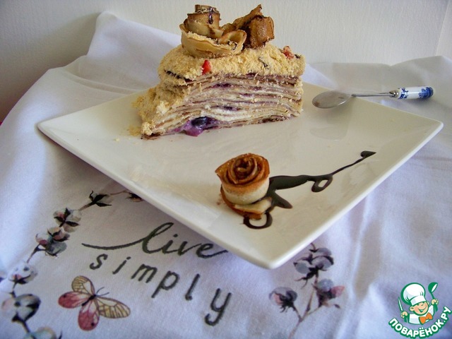 Очень понравились блины на вкус! Украсила и собирала торт иначе (не сворачивая их в трубочки), получился торт -просто объедение! Спасибо огромное, Анечка, за удовольствие и наслаждение!