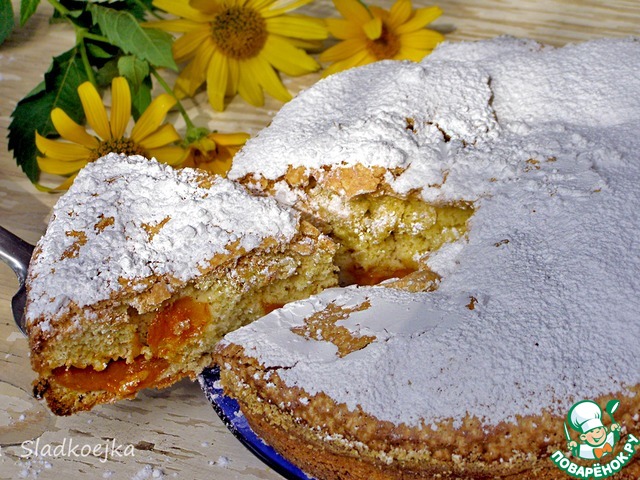, дома известен под названием «три плюс два». Правда, тесто делаю несколько иначе, чем предлагает автор: я отдельно взбиваю желтки с сахаром и белки до крепкой пены. И только потом их соединяю и добавляю муку.Пирог получается нежным и воздушным, при этом не содержит ни грамма масла. Готовить можно с любой фруктово-ягодной начинкой – все будет вкусно! У меня в этот раз с абрикосами.