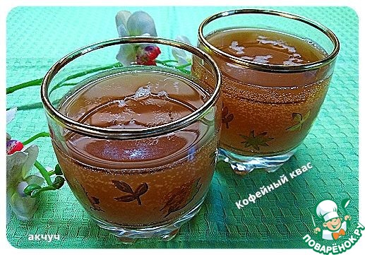 Замечательный квас, такой кофейно-кофейный. Готовила с утра, в холодильнике простоял часа 4, был уже слегка задиристым. Думаю, что к утру следующего дня будет сформировавшийся газированный квасок.