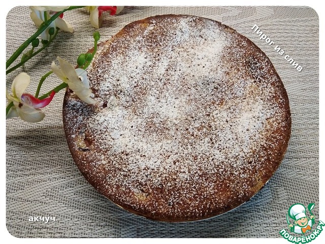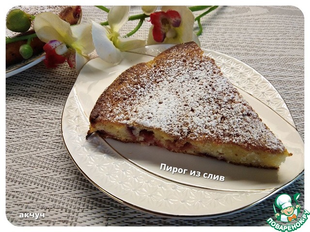 Замечательный пирог! Такой высокий, я бы сказала праздничный! Очень вкусный! В меру сладкий. Чем-то напоминает десерт. Слива у меня была мелкая, поэтому уж как получилось украсить. Выпекала 40 минут при 180 градусах. Совет с пудрой удачно использовала. Рецепт забираю в любимчики!