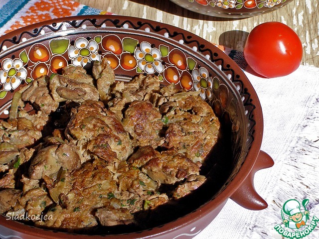 Рецепт мне понравился простотой и незамысловатостью приготовления. Не обошлось без изменений: кинзы у меня не было, поэтому взяла петрушку, лук в маринад не добавляла, а просто обжарила его перед тем, как добавить печень. Все готовила на плите, в сковороде. Получилось вкусно, сочно и быстро!