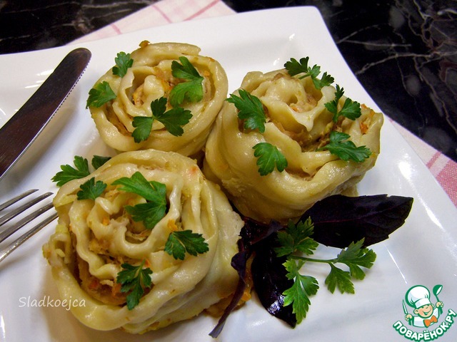 Эффектное блюдо, смотрится очень симпатично. Мне понравилась идея с картофельной подушкой (бывает, что я тоже использую этот прием, когда опасаюсь, что на дне пригорит). Как сказано в рецепте, блюдо напоминает пельмени или вареники. От себя добавлю, что готовить штрули проще и быстрее. Конечно, вареники нам ближе и привычнее (и, по секрету скажу, что вкуснее), но я благодарна автору, что она познакомила меня с их красивыми немецкими родственниками.