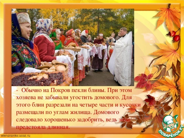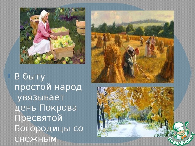 В народе Покров день знаменуется завершением полевых работ, выпасом скота. Жители деревень готовятся к холодам.