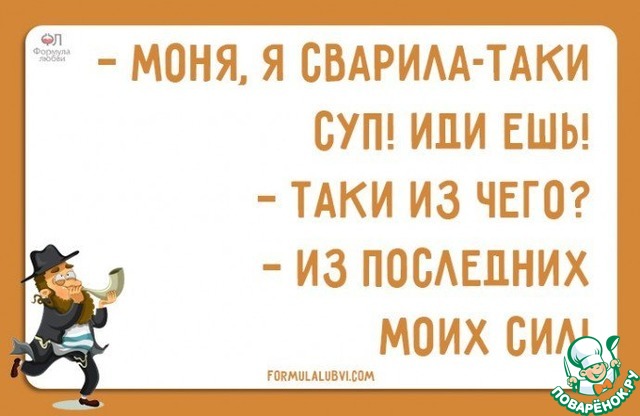 — Сеня, кушай борщ, шоб ты сдох, ты должен поправиться!!!