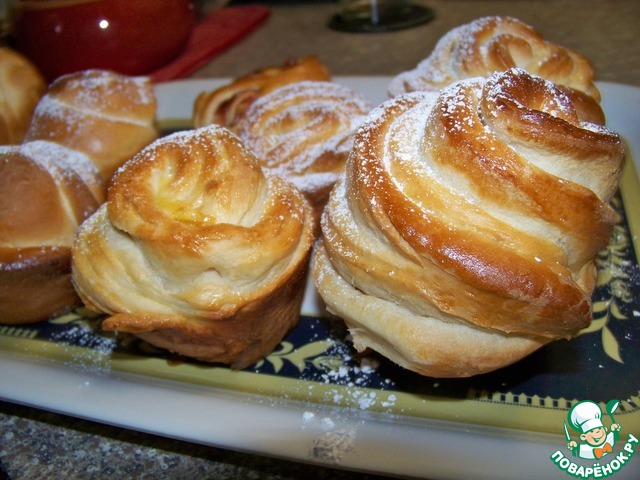 Тесто замечательное, работать с ним -одно удовольствие! ! Пока булочки выпекались, запах сдобы летал по всей квартире ..обалденный! Действительно, самое сложное было готовую выпечку сфотографировать до набега жаждущих снять пробу. Булочки получились отменные- пышные, ароматные и приятные на вкус! Наконец, настал момент, когда смогла обозначить действо словами Карлсона из любимого мультика- "А мы тут плюшками балуемся!" Спасибо, Олечка, за чудо-булочки!