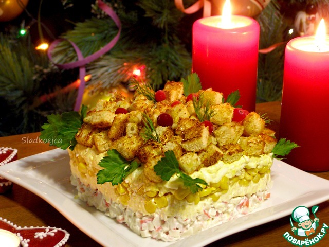 Крабовый салат с чесночными сухариками, автор olgatash1416 https://www.povarenok.ru/recipes/show/162071/