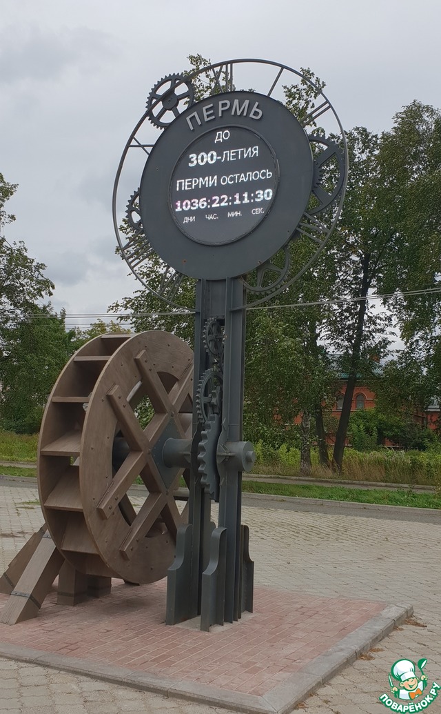 Арт-объект находится там же на Разгуляе. Именно такое колесо стояло на плотине Егошихинского медеплавильного завода, с основания которого в 1723 году и началась история Перми.