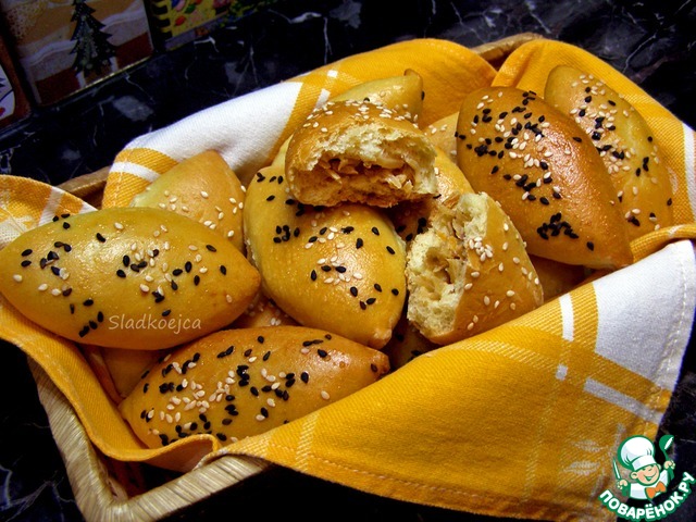 Хорошо знакомые, вкусные пирожки. Чтобы обогатить вкус начинки, с капустой обжарила немного лука и моркови - я всегда так делаю.