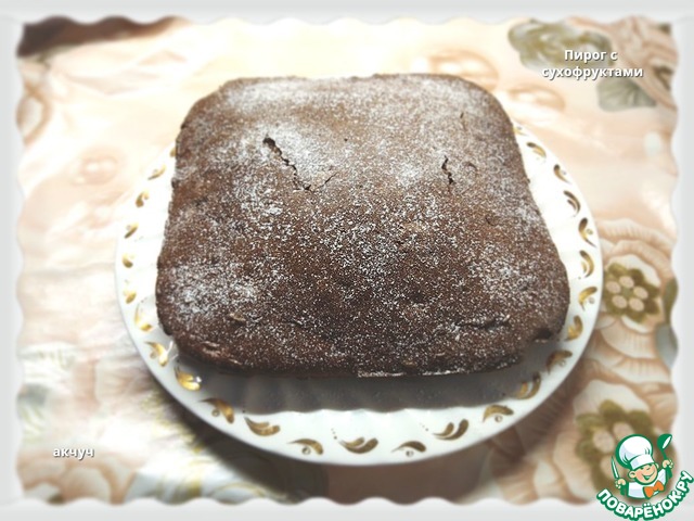 Замечательный получился пирожок! Мягкий, вкусный. Сахара чуть меньше добавила, так как использовала сухофрукты в сиропе. На слои не резала и сгущенкой не смазывала. И так получилось очень вкусно. Пекла 30 минут при 180 градусах, потом верх прикрыла фольгой и еще 10 минут допекала. Семья довольна!
