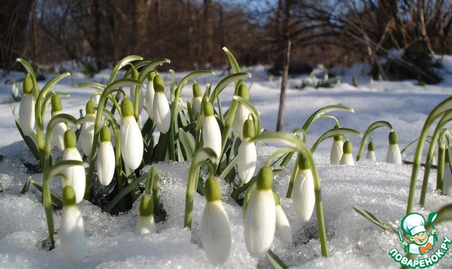 Там, где снег таял, вырастали белые цветы — подснежники, вестники весны, и цветы, белые лепестки которых были усеяны красными, как кровь, пятнышками.