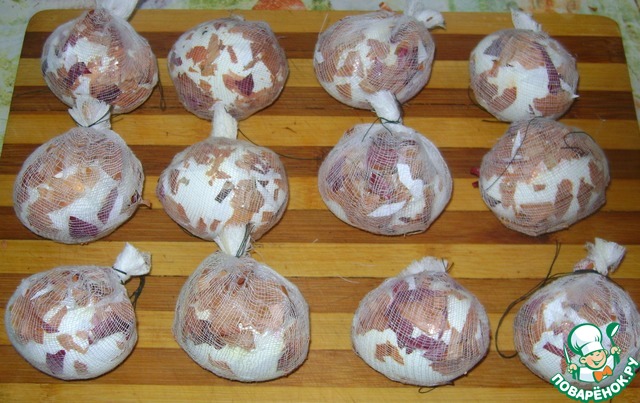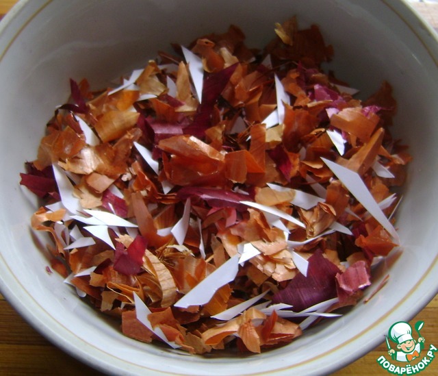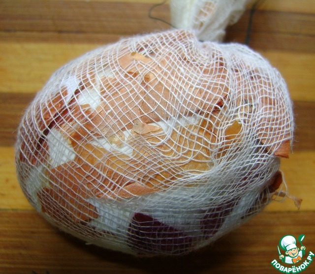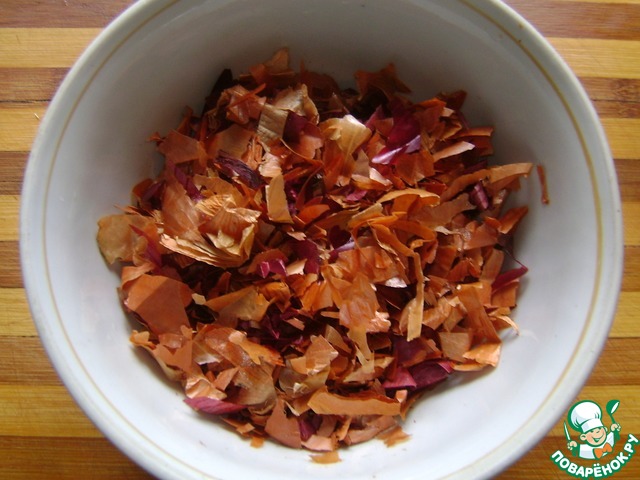 Заранее вымытую и обсушенную шелуху, (при необходимости. Мне этого не понадобилось, т.к. сохраняю внутренние чешуйки лука. А они всегда чистые