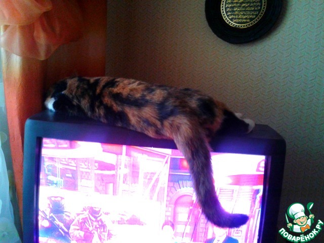 Кошка соседки. Зашла к ней, а она вот так телевизор смотрит!