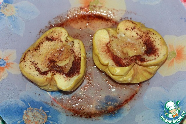 Еще вариант десерта - зеленые яблоки, запеченые с корицей. Делаю в микроволновке.