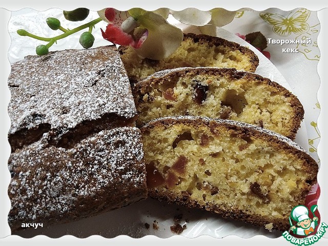 Так как в нашей семье любят творожную выпечку, то рецепт как раз подошел для домашнего застолья. Готовила точно по рецепту, но сахара уменьшила до 200 г и вместо цукатов и изюма взяла смесь сухофруктов и орехов в сиропе. Брала обычных две формы для кексов, боялась, что не пропечется кекс. Пека 55 минут при 180 градусах. На мой вкус получилось суховато, но семья оценила.