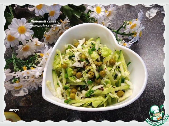 Зеленый салат с молодой капустой по рецепту Натальи Okoolina