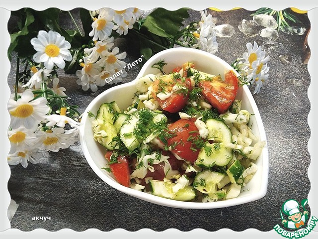 Вкусный салат получился. Вместо листьев салата брала пекинскую капусту, остальное по рецепту. Как раз в такую жару самое подходящее.
