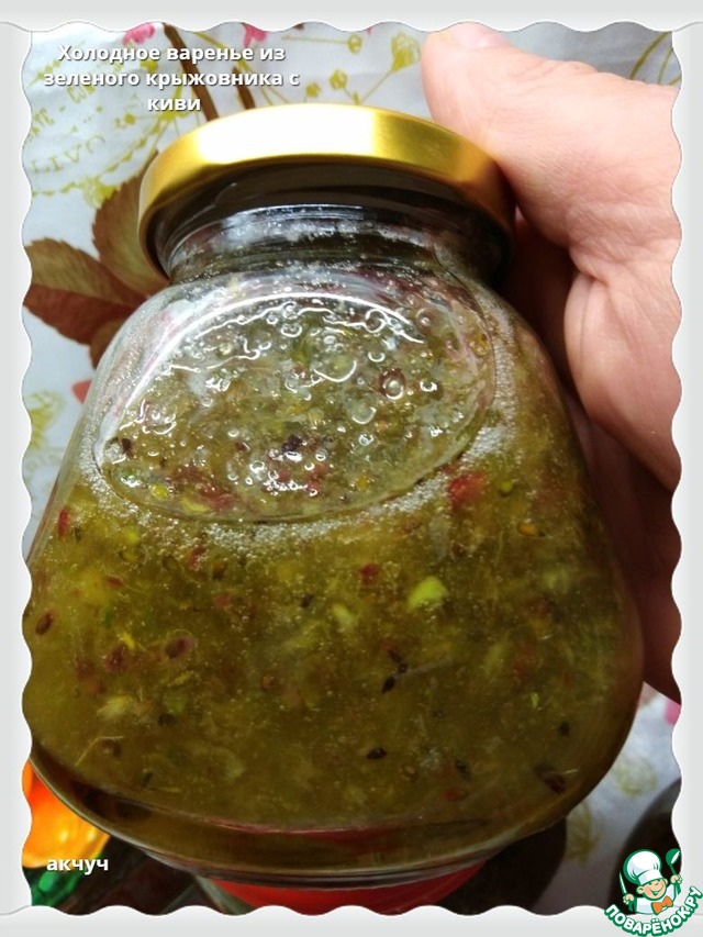 Холодное варенье из зеленого крыжовника с киви по рецепту Валерьянка