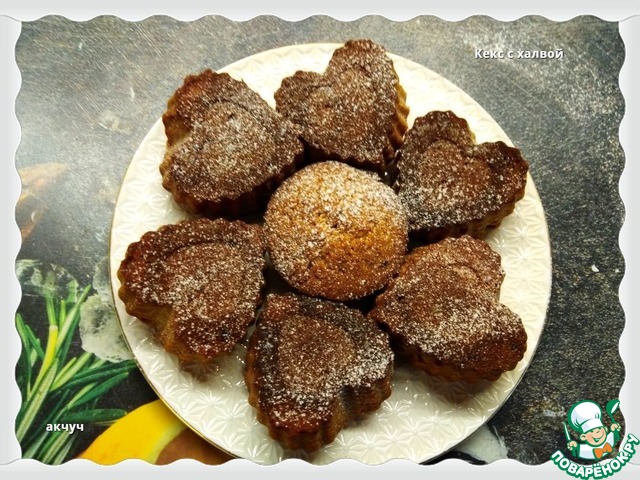 Сегодня воспользовалась рецептом. Мне нужна была штучная выпечка, поэтому пекла в маленьких формочках. Муки взяла 230 г, остальное по рецепту. Выпекала 25 минут при 180 градусах. Получились очень вкусные рыхлые кексики с ярким вкусом халвы. Просто восторг!!!