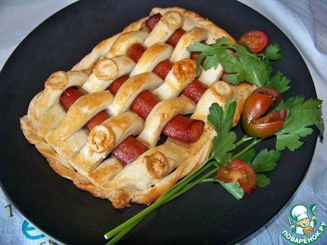 В холодильнике лежали бесхозные сосиски,которые срочно надо было "пристроить" и... вдруг на глаза попался рецепт от Аллочки.Получился очень вкусный пирог,который был "оприходован" за один присест мною и ...любителями выпечки!Спасибо,Аллочка,за удачный рецепт вкусного пирога!