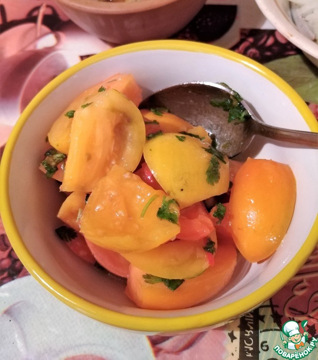 Салат из маринованных бурых помидоров от Демоника https://www.povarenok.ru/recipes/show/154172/