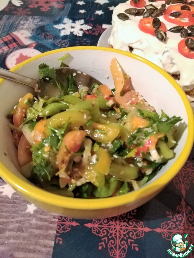 Вкусный пикантный салат. Использовала свежий острый перец. Без укропа и зеленого лука.