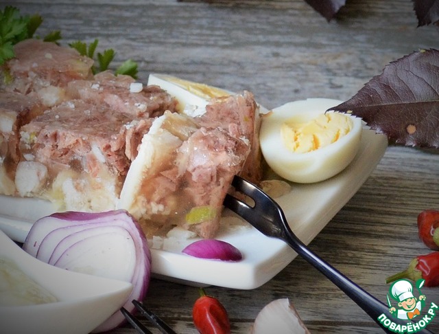 Из сборного мясного набора - свиная рулька, говяжьи булдыжки и курица.