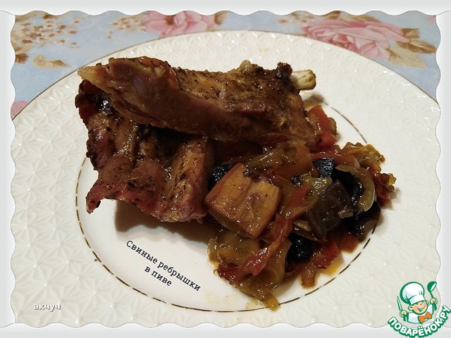 Не давал мне покоя рецепт. Уж очень хотелось продегустировать ребрышки. Пиво было светлое, перец из заморозки, грибы тоже из заморозки белые. Приготовила. Получилось ооочень вкусно, хотя и жирновато. Запекала под фольгой 50 минут, потом без фольги еще 20 минут. Часто, конечно, такое готовить не буду, но иногда побаловать себя и родных буду рада.