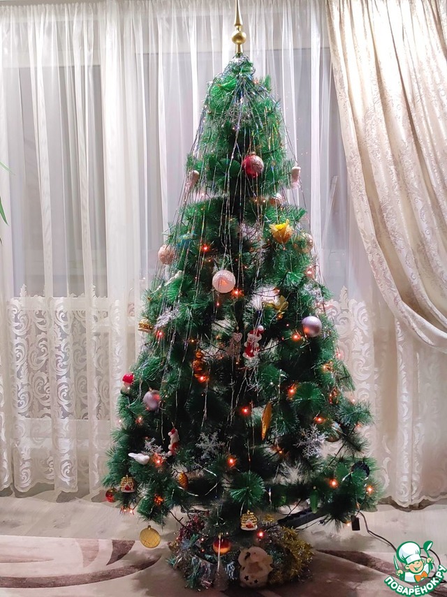 Прекрасная ёлка и изумительно красиво-соблазнительный стол! Всё смотрится празднично ,вкусно и безупречно!
